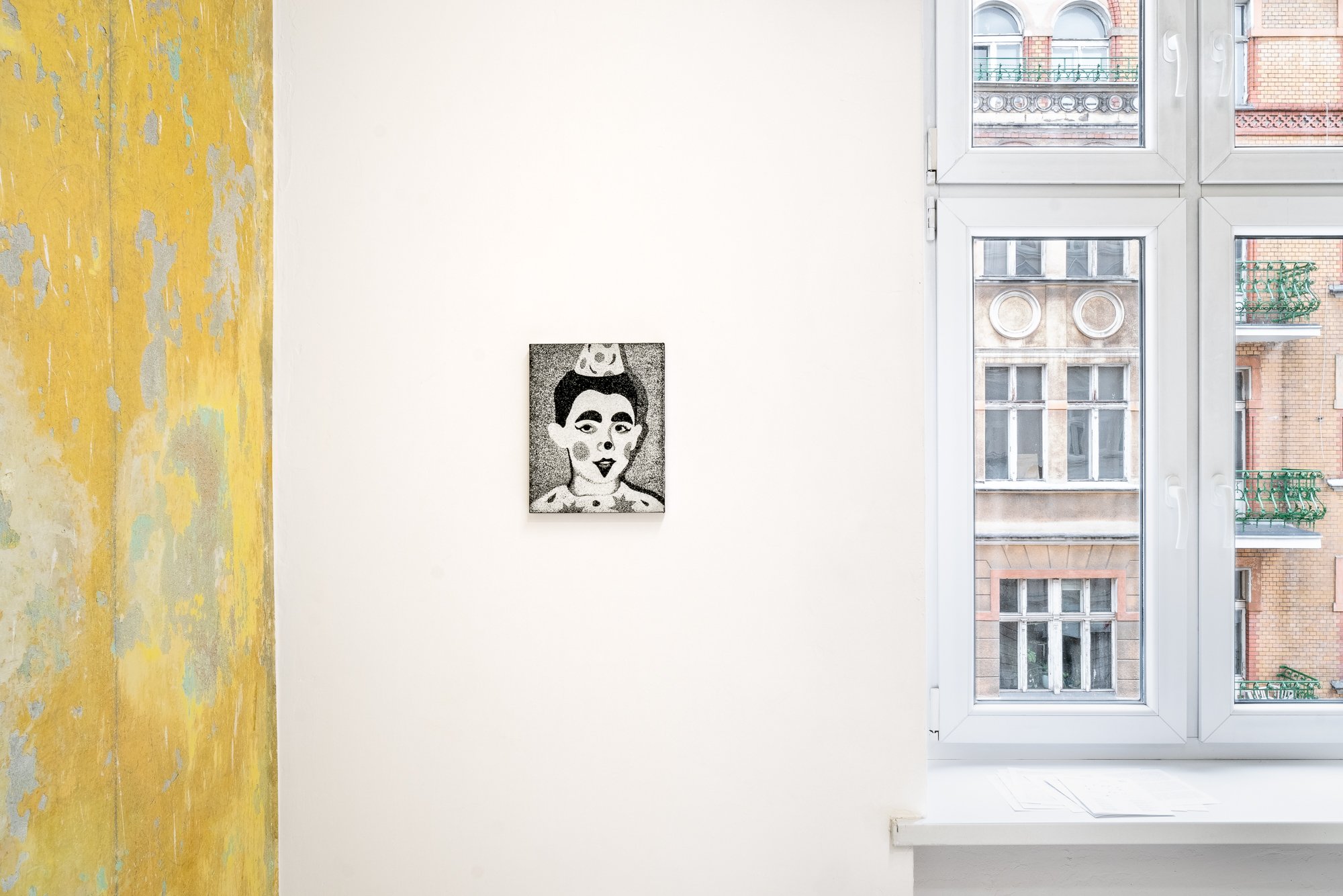 Pracę nad obrazami, które wyrosły na gruncie wyżej wspomnianej tęsknoty i ostatecznie złożyły się na tę wystawę, rozpocząłem jednak od wyznaczenia prostych, lecz istotnych reguł działania, które nietrudno zauważyć na pierwszy rzut oka. Brak tu kolorów, prawie żadnych śladów pędzla czy złożonych kompozycji – malarskich środków wyrazu, z których nie raz chętnie i obficie korzystałem. Dyscyplina formalna, jaką sobie narzuciłem, wynikała bezpośrednio z potrzeby okiełznania niepokoju, w jakim tworzyłem dotychczas. Szarość, monotonna ziarnistość oraz specyficzna, wymagająca precyzji i cierpliwości technika, polegająca raczej na celnym „utrwalaniu” obrazu niż jego mozolnym rozmalowywaniu, miały służyć chwilowej redukcji zwodniczej zmysłowości. Zrzucenie zbędnego malarskiego balastu pozwoliło mi na głębsze skupienie potrzebne do uchwycenia obrazów wyłaniających się z nieświadomości.